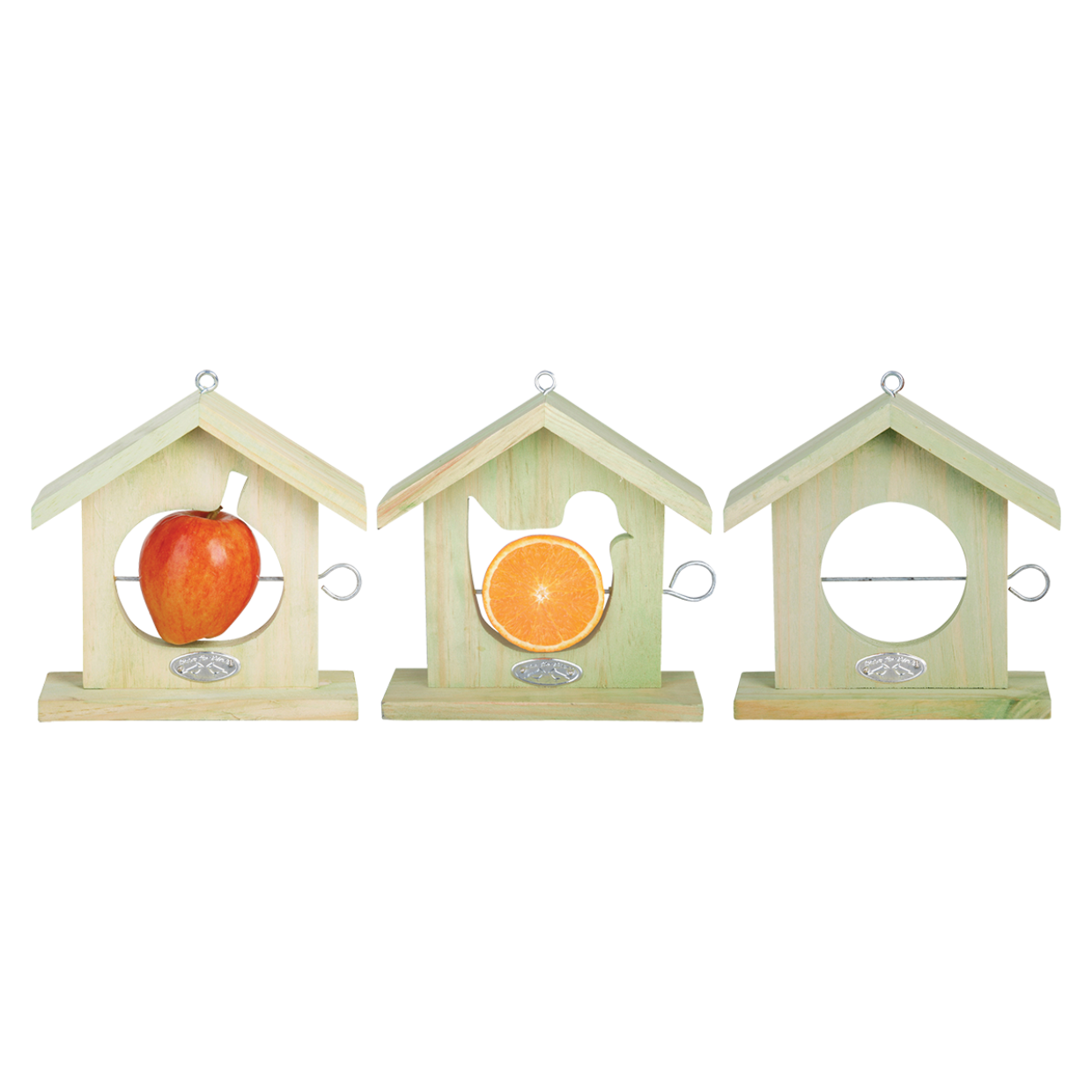 In geen enkele tuin mag een fruitvoederhanger ontbreken. Dit basic appelhuisje met pure materialen biedt vogels variatie aan in hun voer. Deze voederhanger leent zich uitstekend om er stukjes fruit aan te maken, zodat vogels hiervan heerlijk kunnen genieten. Roodborstjes, merels en zanglijsters eten bijvoorbeeld graag appels en peren. Door het uittrekken van de pin kunnen er eenvoudig stukjes fruit erop worden gestoken.