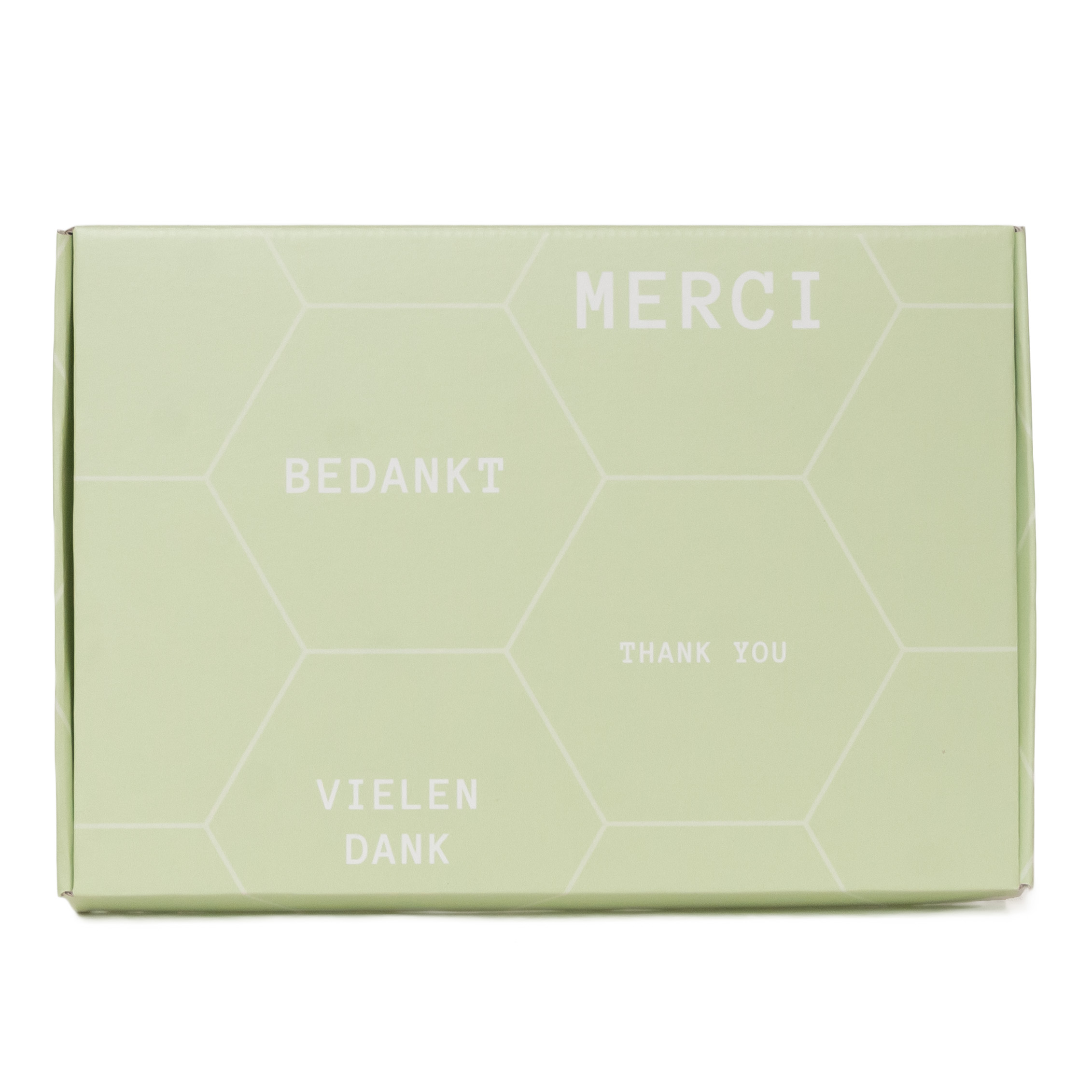 Op dit doosje staat bedankt in verschillende talen. Stel een fantastisch brievenbuspakket met dit brievenbusdoosje samen.
