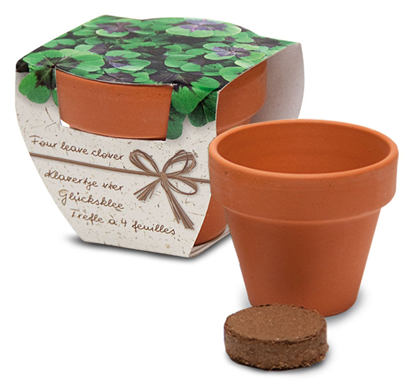 – Terracotta potje (Ø 55 mm en 50 mm hoog) – Cocostablet (Ø 30 mm) – 3-4 bolletjes klavertje vier of 1 zakje zaden Hoe leuk is het om bij uw paasattentie 2025 voor personeel en/of relaties leuke voorjaars items te voegen? En wat is er dan meer voorjaar dan bloemen/zaden? Onze bloemen en zaden producten zijn een kleurrijke en budget optie om toe te voegen aan uw zelf samen te stellen paaspakket 2025. Zelf samenstellen is met deze producten echt een eitje!