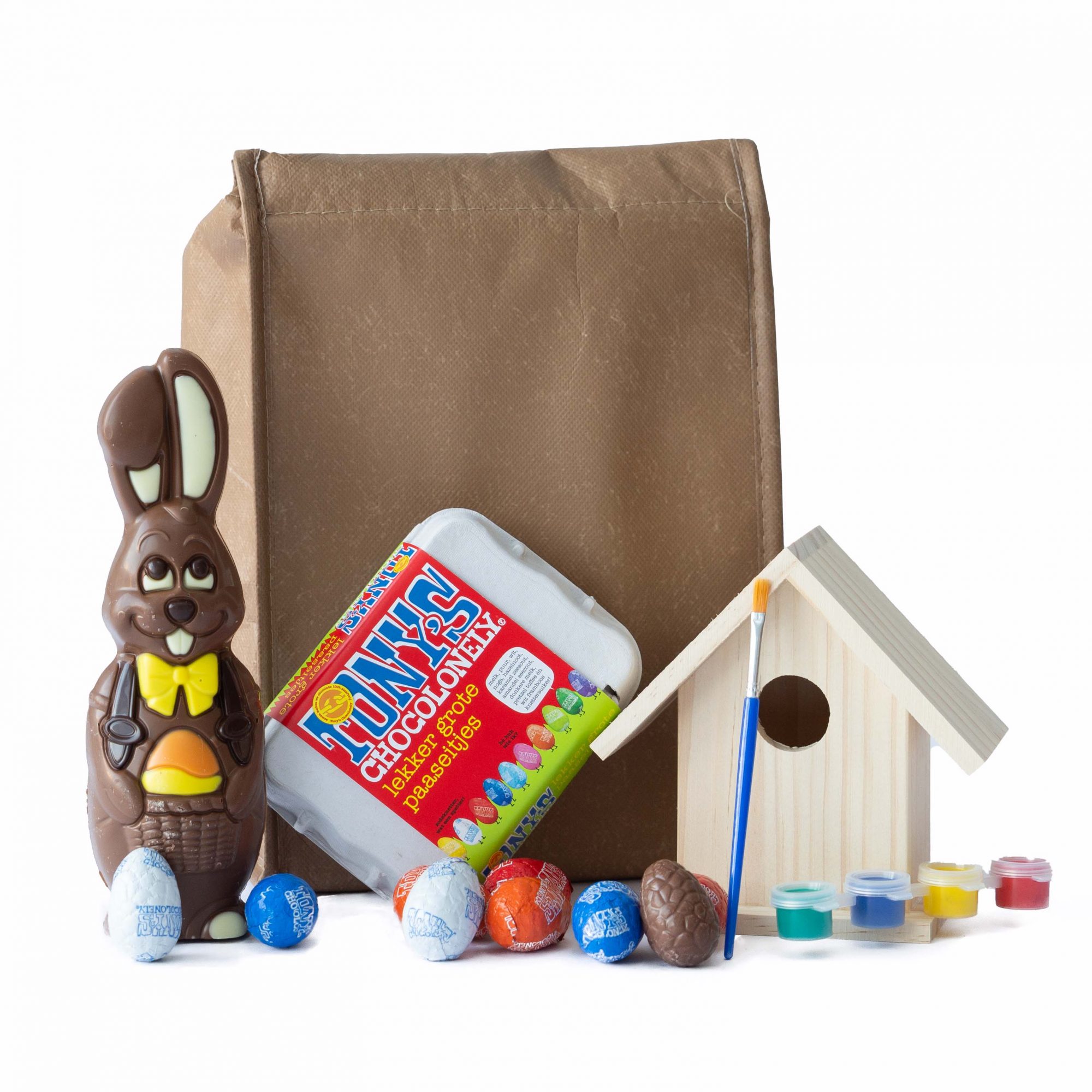 Op zoek naar een leuk paaspakket voor uw medewerkers of andere relaties? Dan bent u hier op het goede adres. Wij van Sanders Gifts maken ieder jaar fantastische paaspakketten. Daarom hebben wij weer een prachtig assortiment aan paaspakketten. We hebben paaspakketten in verschillende soorten en maten en hoge en lage bedragen. De paaspakketten worden verpakt in een mooi tasje of in een superleuke doos. U zou dit prettige paasgeschenk kunnen kiezen die wij voor u hebben samengesteld. U kan er natuurlijk ook voor kiezen om zelf een prachtig paaspakket samen te stellen, daarbij kunt u allerlei leuke producten van andere paasgeschenken of andere paasgerelateerde producten bij dit paasgeschenk toevoegen. U zou er ook voor kunnen kiezen om verschillende producten van dit paaspakket te verwijderen en een ander schitterend product er bij toe te voegen. Laat uw medewerkers, zakelijke relaties of collega's genieten van een vrolijk en leuk paaspakket.